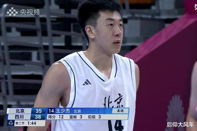 次節中段許利民再上雙塔對付胡金秋,王少傑、方碩再爆發連得4分幫助北京33-32反超,王博終於坐不住叫出暫停,也跟著換上雙塔,但撤下了孫銘徽,周琦回來後立馬就製造2罰做出貢獻,並且還將範子銘3犯提前打掉,許利民無奈換上翟曉川,內線壓力也就全都壓在王少傑身上。
